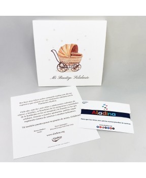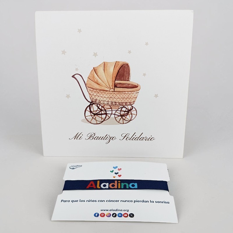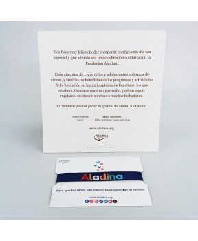 Precio tarjetón personalizado más pulsera solidaria 3,50 € (pedido mínimo 50 unidades)