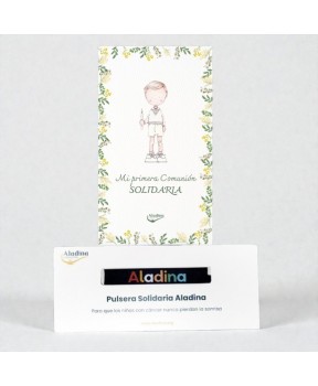 Si quieres personalizar la tarjeta, no hagas el pedido a través de la web y escríbenos por mail a celebraciones@aladina.org precio 3,80 € (pedido mínimo 50 unidades).