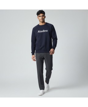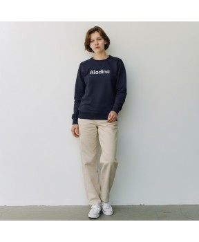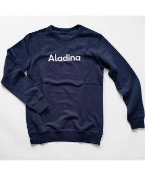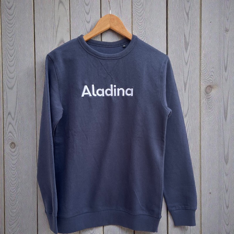 Sudadera unisex de manga normal con bordado de Aladina en color blanco en la parte delantera.