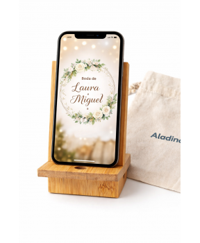 El soporte móvil de bambú desmontable. Magnífico regalo para quienes buscan un accesorio sostenible y práctico.