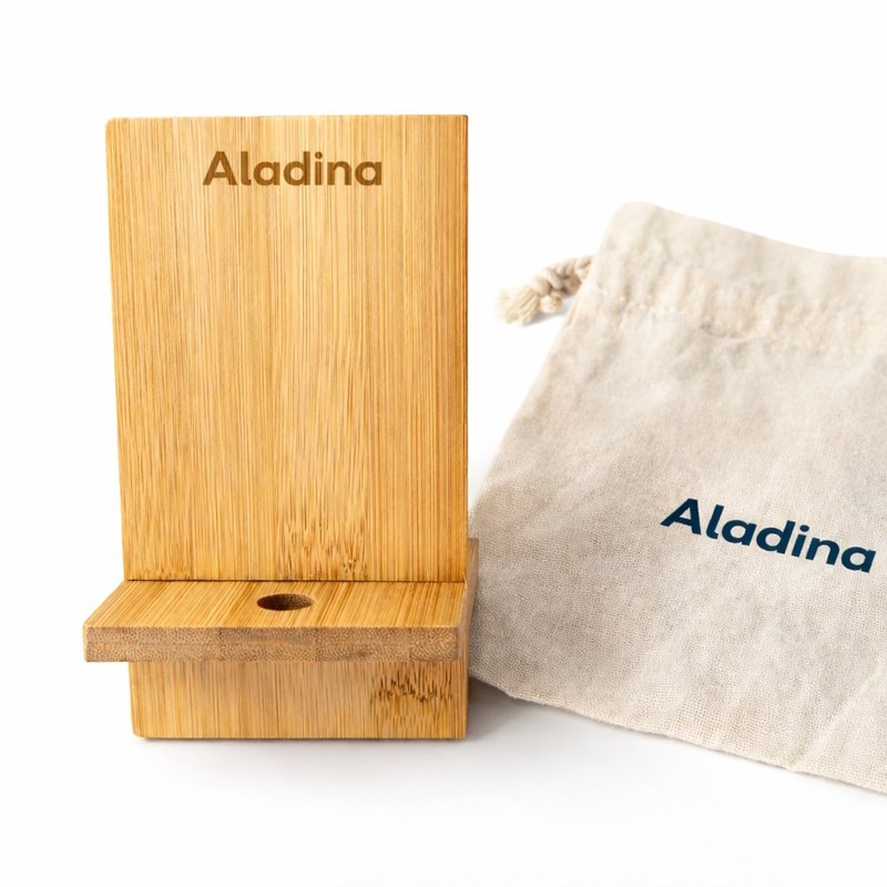 El soporte móvil de bambú desmontable. Magnífico regalo para quienes buscan un accesorio sostenible y práctico.